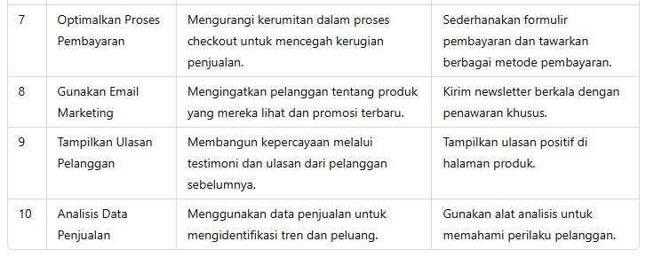 - Deskripsi: Penjelasan singkat mengenai strategi tersebut.