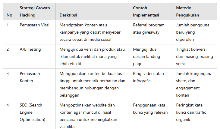 Tabel Analisis: Strategi Growth Hacking dan Implementasinya