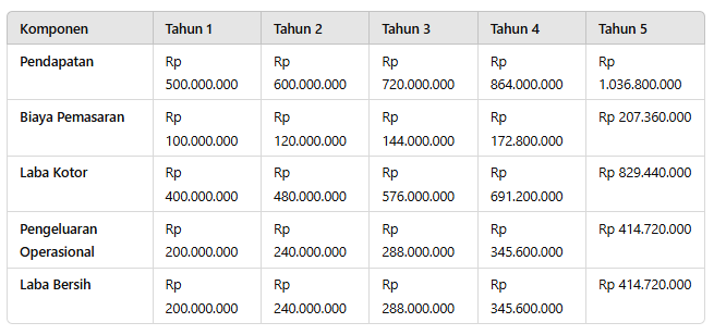 Tabel Proyeksi Keuangan untuk Pemasaran