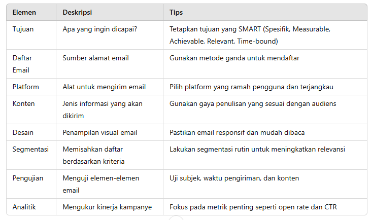 Konten email dapat berupa newsletter, promosi, dan informasi edukatif yang relevan dengan audiens. - Bagaimana cara mengukur keberhasilan kampanye email?