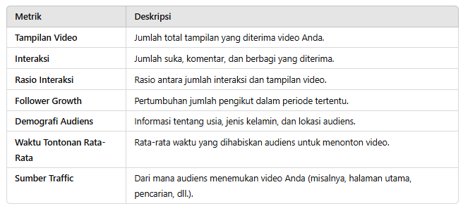 Berikut adalah beberapa metrik penting yang perlu Anda pantau dalam TikTok Analytics: