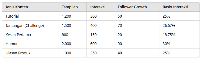 - Berdasarkan data yang diperoleh, sesuaikan strategi konten Anda. Fokus pada jenis konten yang menghasilkan engagement tinggi.
